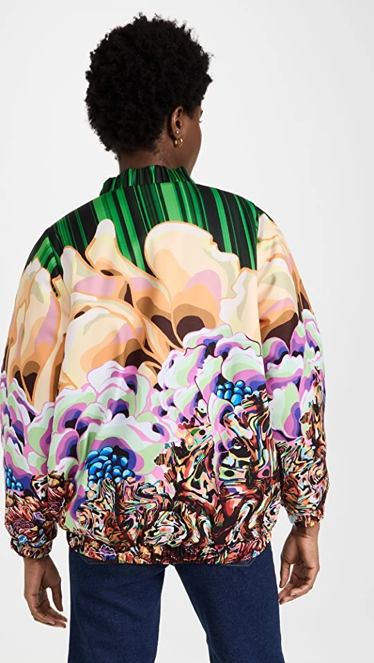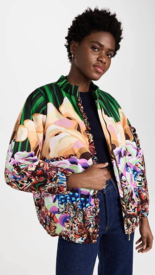 - Psychedelic floral print and ruffle edges